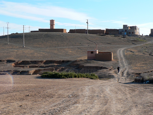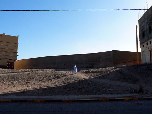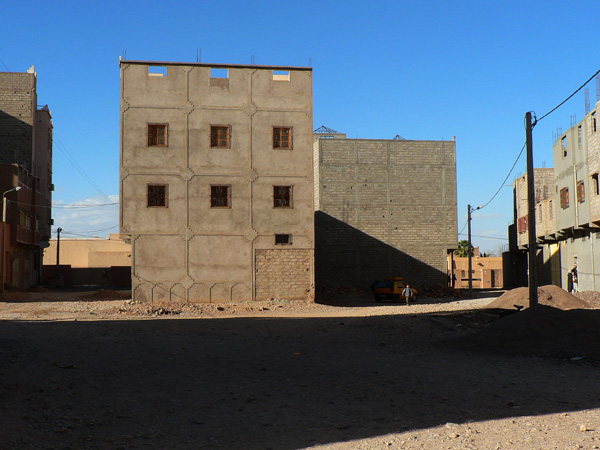 Errance marocaine constitue mon premier travail. J'ai commencé un stage dans le grand Sud marocain en essayant de rendre l'atmosphère d'un petit village agricole aux environs de Zagora. Un peu dépité, les résultats ne rencontrant pas vraiment les attentes de mon professeur, les derniers jours, j'ai renoncé à une expédition dans le désert pour me remettre en question et errer dans les faubourgs et sur les routes. Le groupe est rentré en Belgique, je suis resté à Marrakech et j'ai poursuivi mes vagabondages.